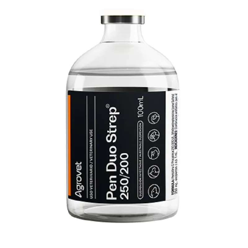 Pen Duo Strep 250/200 indicado para el tratamiento de artritis, mastitis e infecciones del tracto gastrointestinal, respiratorio y urinario causado por microorganismos sensibles a la Bencilpenicilina y a la Dihidroestreptomicina.