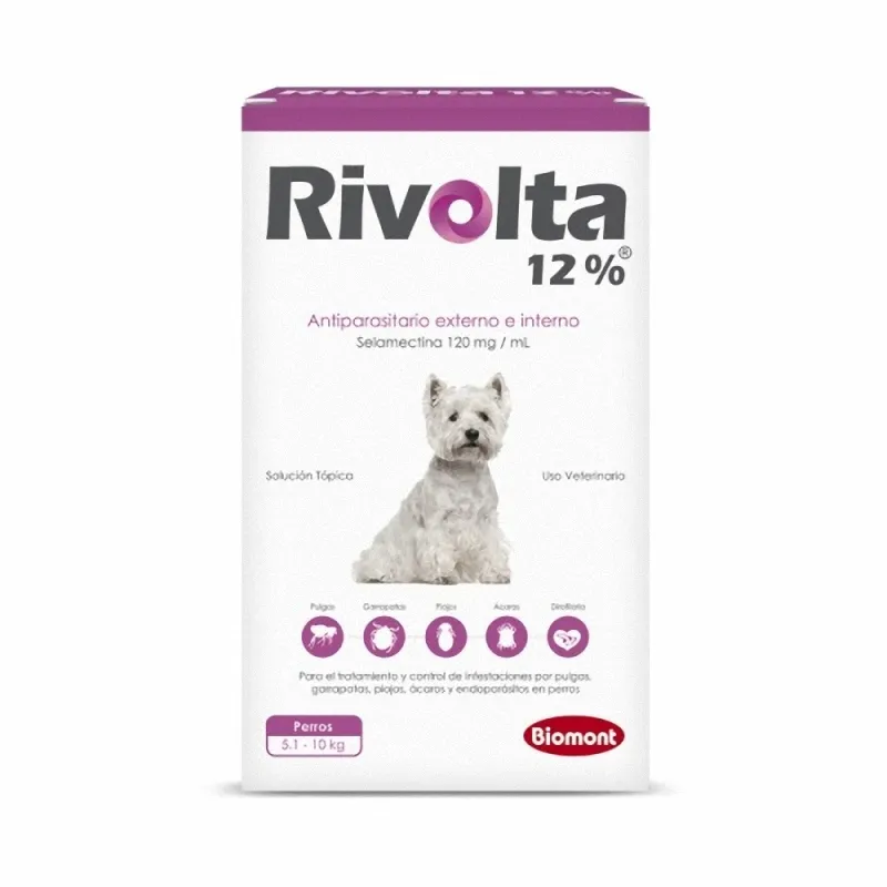 Rivolta 12% es un antiparasitario interno y externo para perros, formulado para ofrecer una protección completa contra una amplia gama de parásitos.