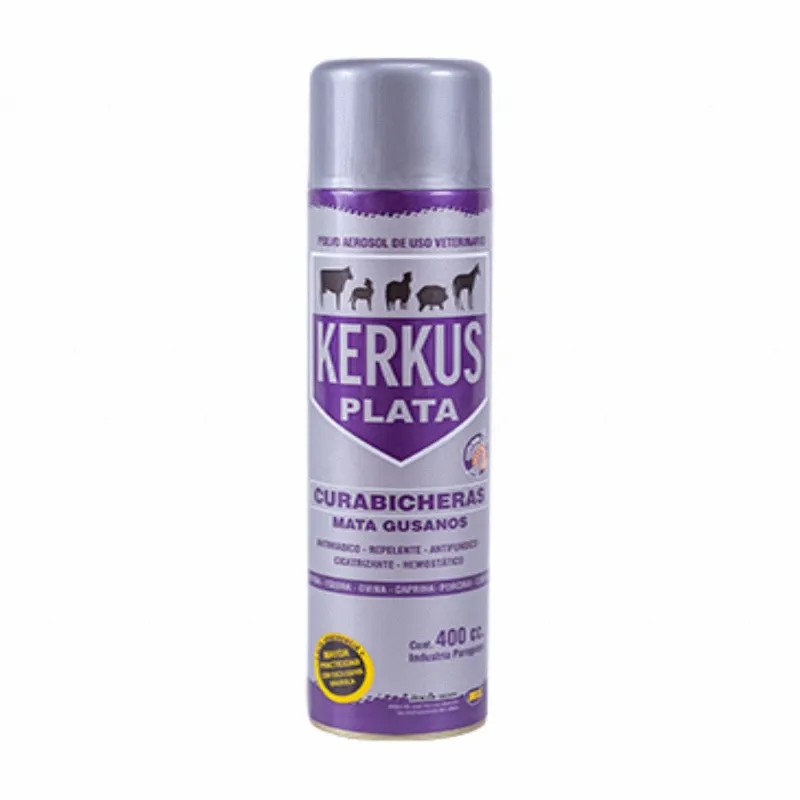 Curabichera kerkus Plata es para el tratamiento preventivo y curativo de bicheras en todo tipo de heridas en las especies bovina, equina, ovina, caprina, porcina y canina; con propiedades larvicidas, antimiasicas, hemostáticas y cicatrizantes. Puede utilizarse en animales de cualquier edad inclusive recién nacidos. Forma una película protectora que elimina el sangrado. Previene la miasis en los trabajos de rutina (cirugía, ombligo, descole, descorne) gracias a su poder repelente.