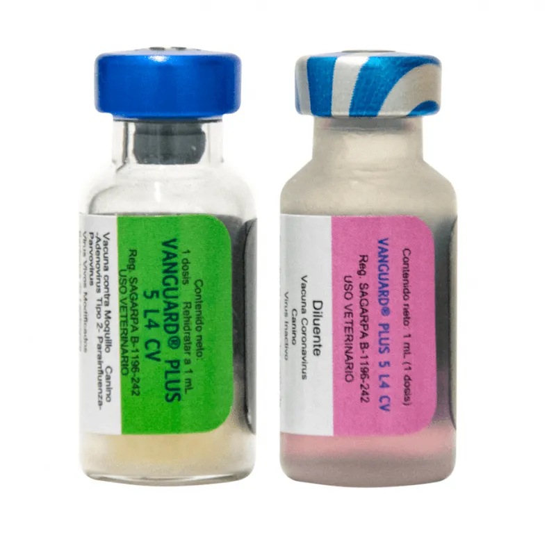 Vanguard Plus 5 L4 CV, Vacuna preventiva del Distemper canino, Hepatitis infecciosa canina, Enfermedad respiratoria producida por Adenovirus tipo 2, Parainfluenza, Parvovirosis, Coronavirosis y Leptospirosis de los caninos.