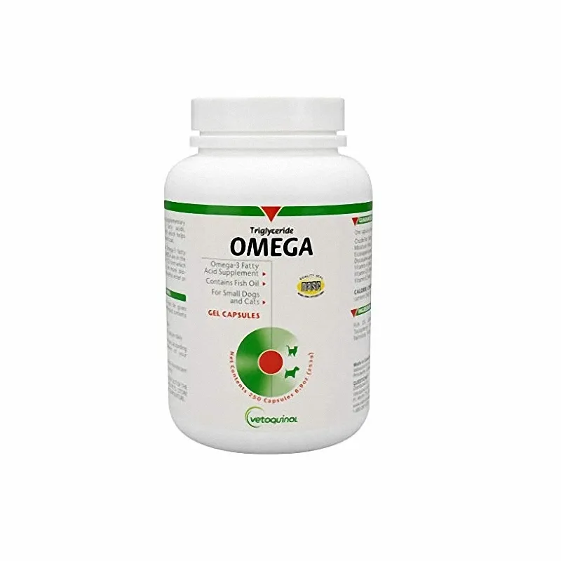 Triglyceride Omega small es un Suplemento nutricional para perros y gatos, indicado cuando el aporte dietético es insuficiente o cuando la piel y las condiciones del pelaje indican que la suplementación con ácidos grasos omega 3 podrían ser de beneficio para el animal.